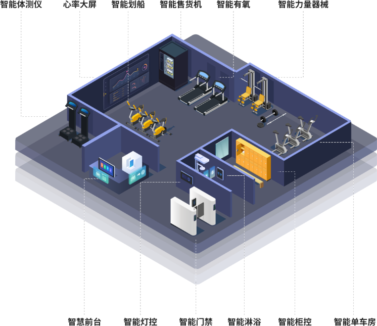 24小時(shí)智能健身房,SaaS軟件系統(tǒng)+智能化硬件,打造24小時(shí)無人值守、月付制等健身房新模式;支持傳統(tǒng)健身房改造升級(jí),一站式智能健身房方案輸出。